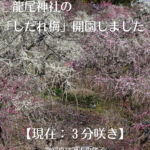 【令和8年・2026年情報】 しだれ梅で有名な龍尾神社の花庭園の「しだれ梅」が開園されました。 現在(2/15)、全体で3分咲きほどです。(写真は龍尾神社のInstagr...