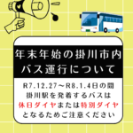 2025年12月27日~2026年1月4日の9日間、掛川駅を発着するバスは休日ダイヤまたは特別ダイヤとなります。 とくに「大東浜岡線」は特別ダイヤにより大幅減便となります...