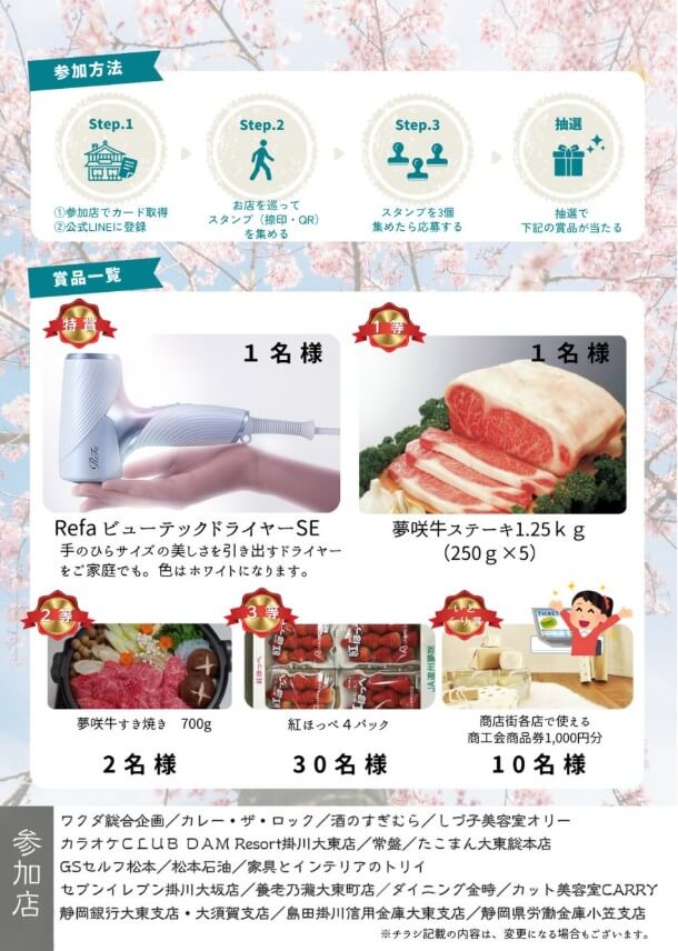 駐車場:掛川城公園駐車場(有料)をご利用ください。(1時間分の駐車サービス券配布します)