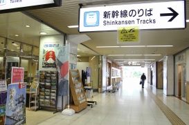 北口からは連絡通路をあがってすぐ左側。南口新幹線改札からは土産店横の通路を直進。