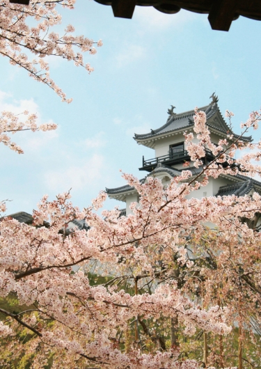 山内一豊と内助の功で知られる妻お千代ゆかりの掛川城周辺には、カケガワザクラ、四季桜、しだれ桜、ソメイヨシノなど約150本の桜が植えられており、3月初旬から徐々に開花し、長い期間桜景色を楽しむことができます。