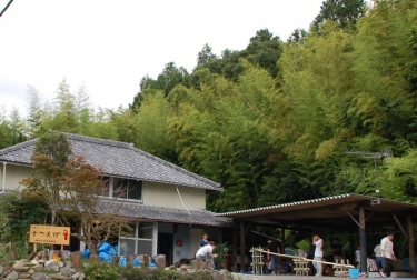 目の前右手に田んぼ、正面に無農薬にこだわって作る時ノ寿茶園、左手の山には栗やタケノコなど里山ならでは山の恵みが収穫できる。