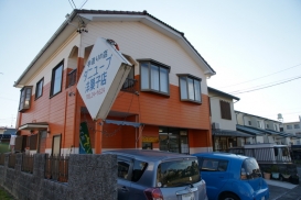 オレンジ色の建物が目印。