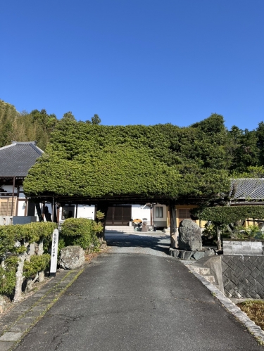 市天然記念物樹齢約400年以上の「イヌマキ門」と左右の「ソテツ」を潜り抜けると客殿には仏様の天井絵が輝いて描かれています。境内にはボケ封じ観音が安置され、超高齢化社会の現代老いを迎える人々が願いを託します。