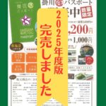 2025年度版「掛川まる得パスポート」販売終了しました🙇 2026年2月22日 2025年度版「掛川まる得パスポート」はご好評につき完売となりました。 ご購入を予定されていた皆様にはたいへん申し訳ございません。 2026年度版につきましては、3月下旬ごろに発行予定とのことです。 発行されれば、3月中でもご利用いただけるとのことですので、 春休みのお出かけには間に合うのではないかと思われます。 新しい情報が入り次第、お知らせさせていただきます。 なお、すでにお持ちの2025年度… ≫すべて読む
