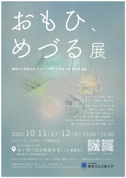 静岡文化芸術大学デザイン学科匠領域学生の作品展「おもひ、めづる展」が開催されます。