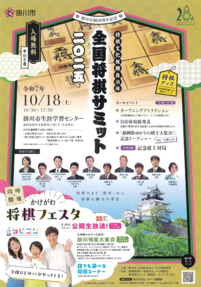 全国将棋サミット及びかけがわ将棋フェスタの詳細について⇒https://www.city.kakegawa.shizuoka.jp/gyosei/docs/887503.html