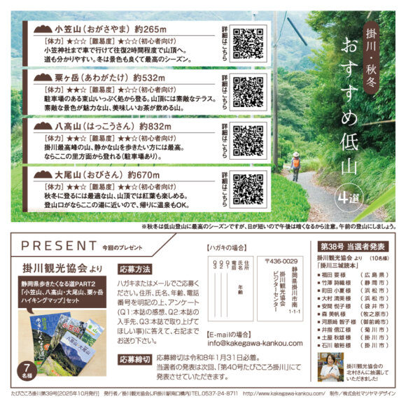 『たびごころ掛川』は、掛川観光協会掛川支部が発行する季節の観光情報誌です!