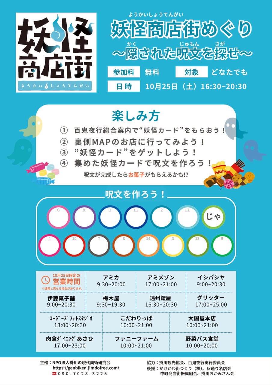 掛川駅北の街中商店街では、今週末10月25日(土)に「妖怪商店街めぐり🔥 」と 「妖怪商店街de現代アート茶会🍵」 が開催されます。