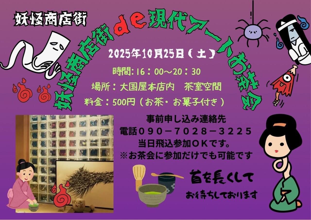 「妖怪商店街de現代アート茶会🍵」は、大国屋本店内の茶室空間にて、現代アート茶会が開かれます!