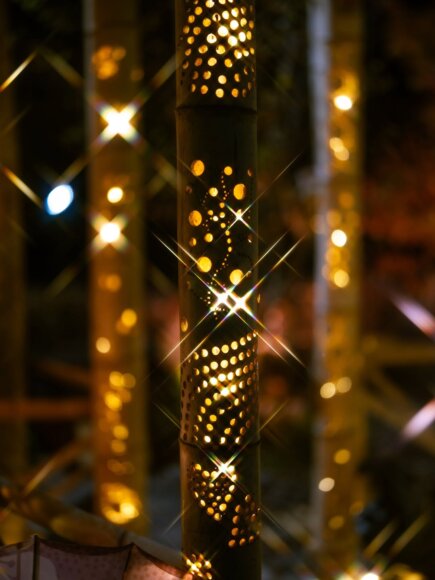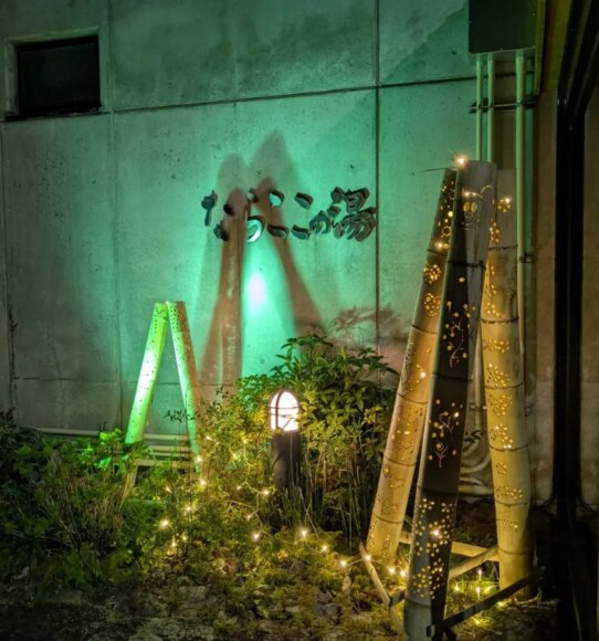 男女露天風呂、館内、玄関前に飾られていて、点灯されると美しく華やかにライトアップされます。
