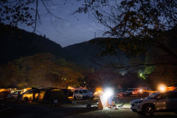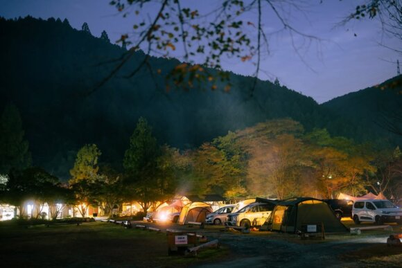 また、ならここの里キャンプ場でも、日に日に紅葉が進み、夜はライトに照らされて、きれいにライトアップされているようです。