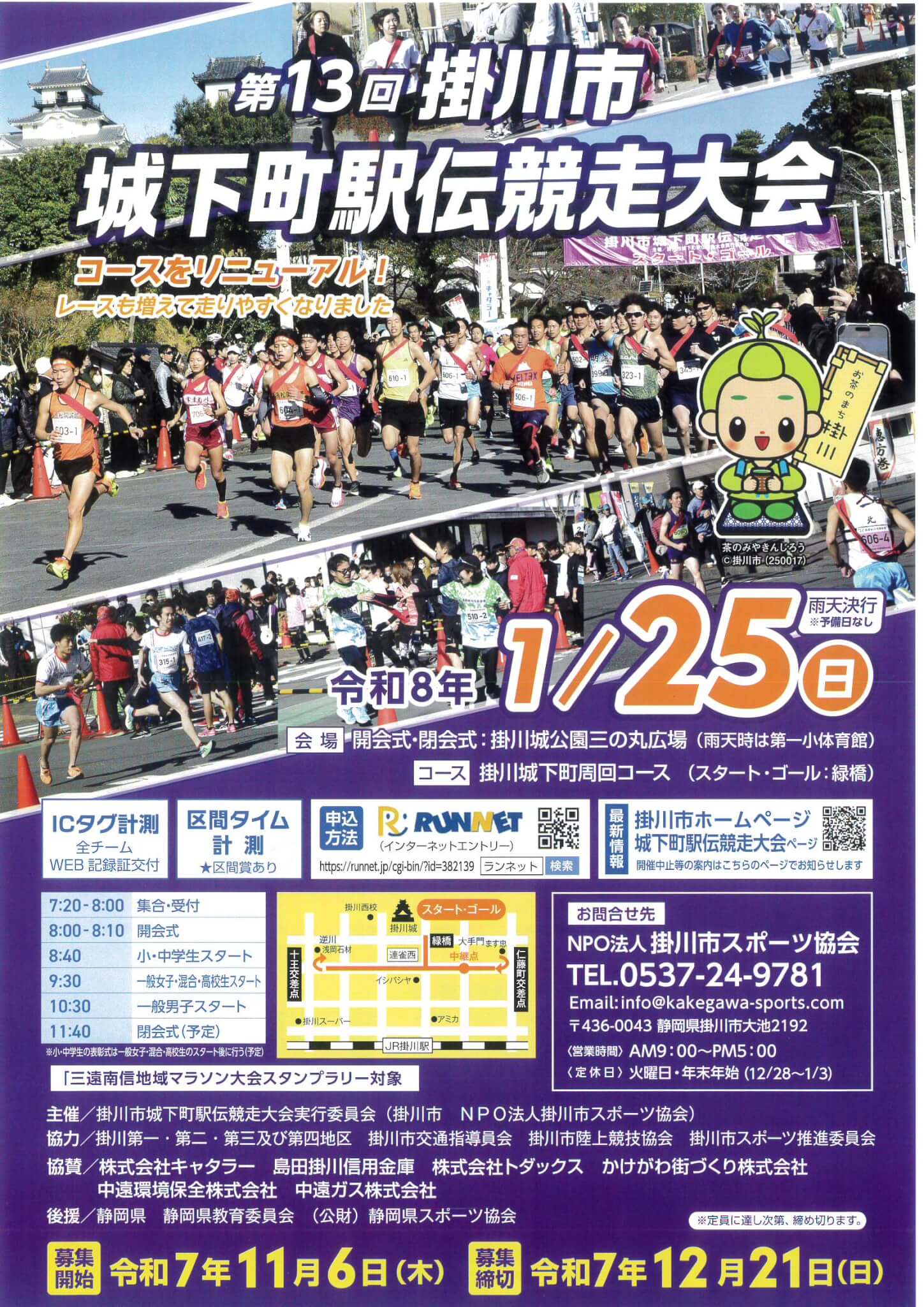 令和8年1月25日 「第13回掛川市城下町駅伝競走大会」が開催されます♪