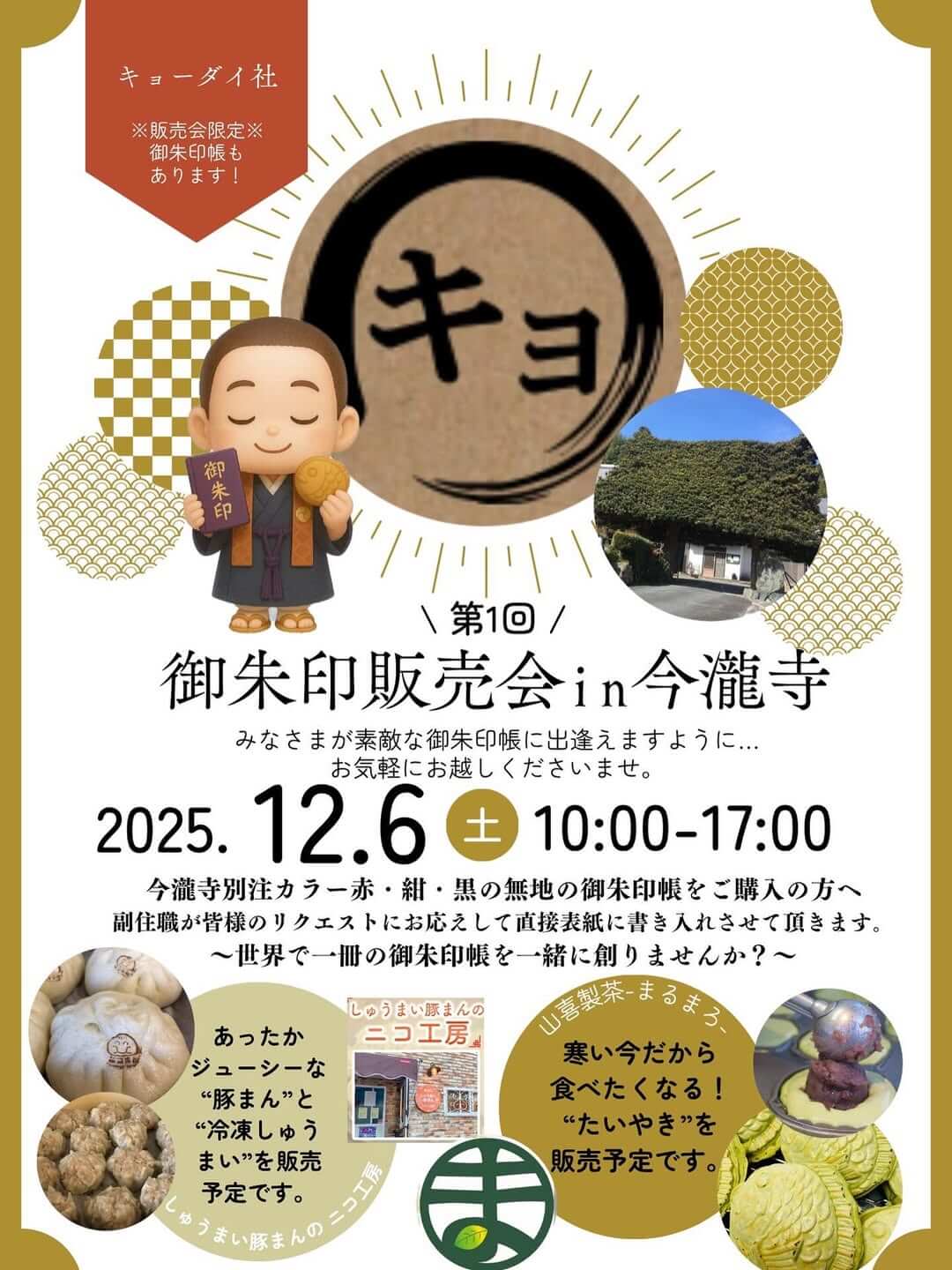 今回は山喜製茶様のたい焼きや、ニコ工房様の豚まんなども販売されますので、ぜひお楽しみに🍵🐷