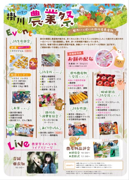また、当日は農業祭スペシャルライブステージに「吉岡亜衣加さん」がいらっしゃいます🎶