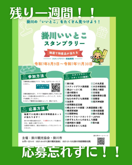 『掛川いいとこ』スタンプラリーまもなく終了🍂