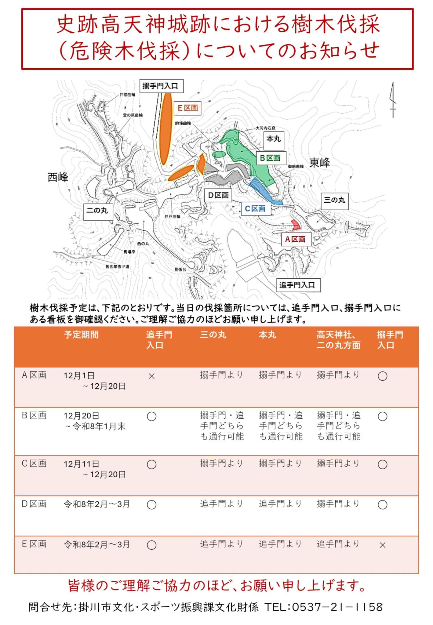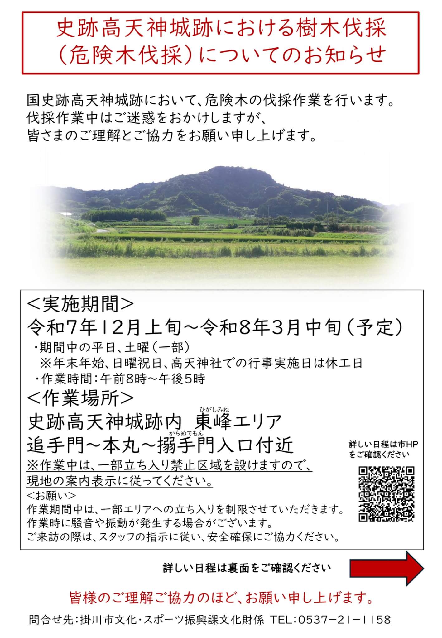 令和7年12月から令和8年3月にかけて、史跡高天神城跡では危険木の伐採が予定されています。