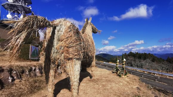 粟ヶ岳の午(馬)は、世界農業遺産の茶草場テラス(かっぽしテラス)らしく、ススキを乾燥させた茶草(刈り草)を使って製作されています🍵