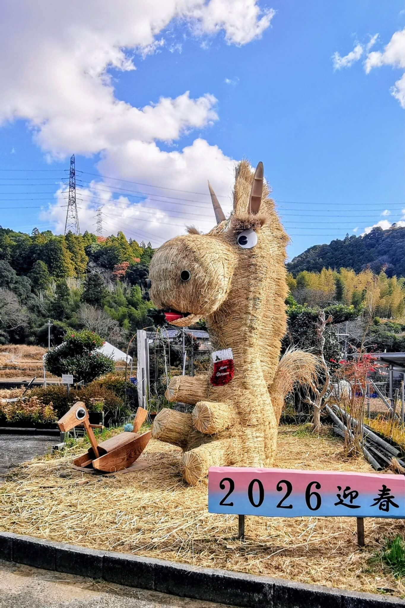 粟ヶ岳の午(馬)は、世界農業遺産の茶草場テラス(かっぽしテラス)らしく、ススキを乾燥させた茶草(刈り草)を使って製作されています🍵