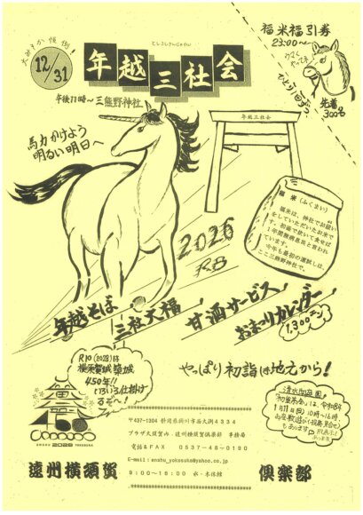 ・12月31日23時より三熊野神社境内(掛川市西大渕5631-1)にて開催