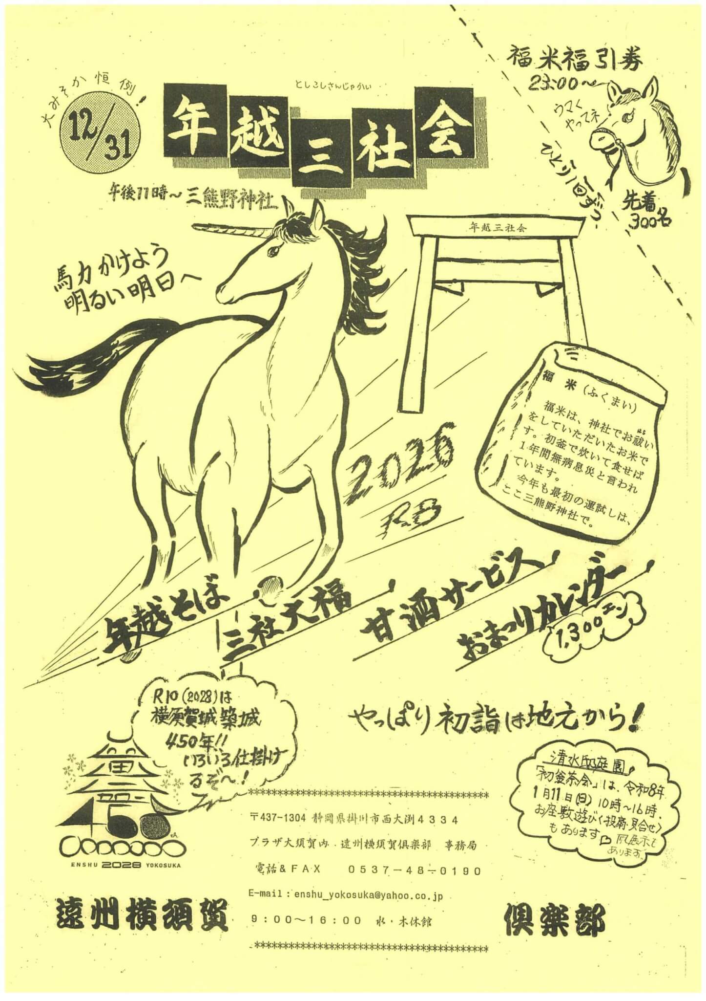 ・問合せは遠州横須賀倶楽部まで 0537-48-0190