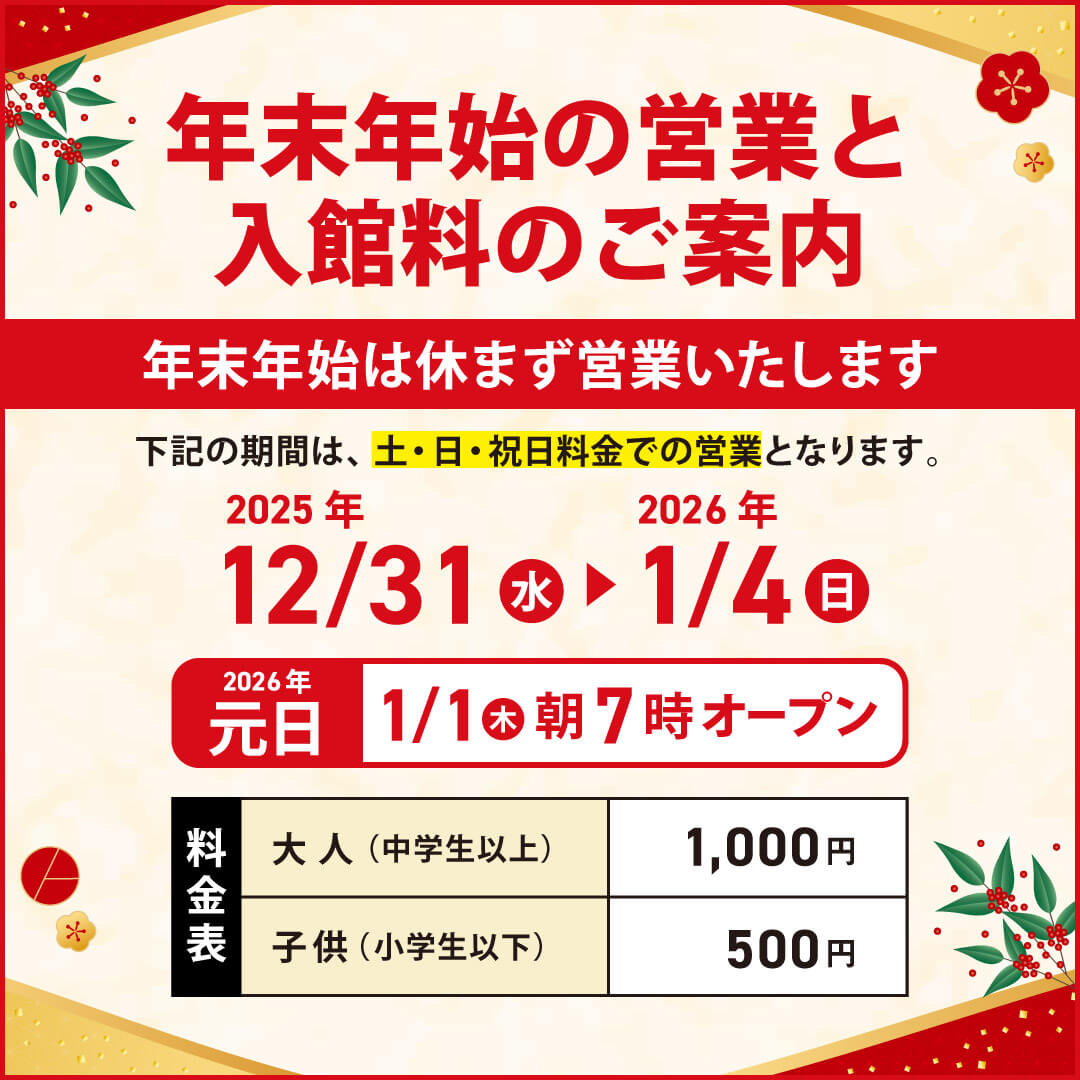 ※1月1日のリバティリゾート大東温泉は、朝7時から朝風呂特別営業♨、餅つき大会やサイコロ運だめしもありますよ♪