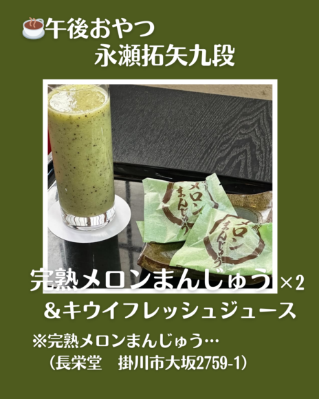 〇完熟メロンまんじゅう×2(長栄堂)+キウイフレッシュジュース