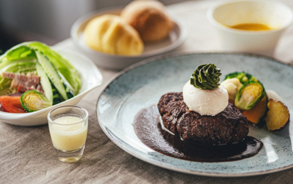 どちらも、サラダとスープ、ハンバーグにはパンがついたセットメニューでの提供となっています。