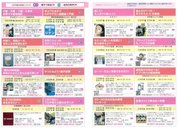 新聞折込でご覧になった方もいらっしゃると思いますが、個店や企業が様々なセミナー✏️や教室🗒️を開催しています🎵