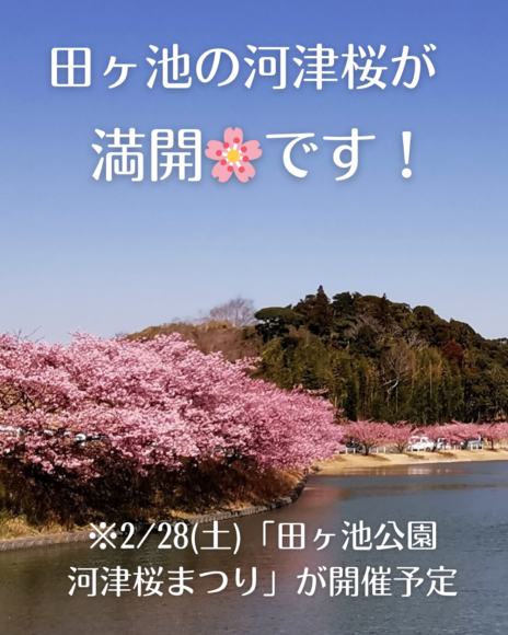また、今年は、河津桜植栽30周年の記念事業として、「田ヶ池公園河津桜まつり」が、今週末に開催されます。