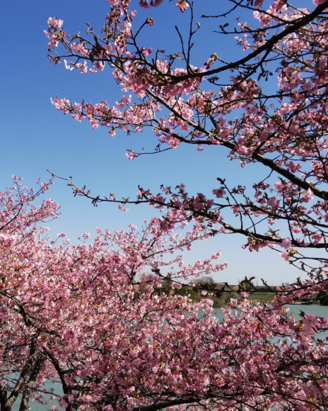 掛川市南部に位置する田ケ池の河津桜🌸が満開となりました。