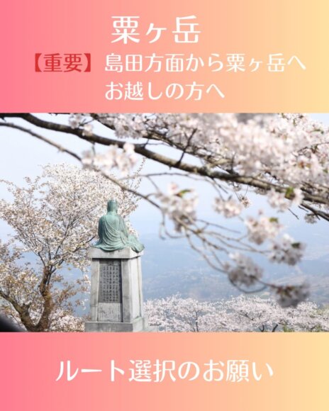 【重要】島田方面から粟ヶ岳へお越しの方へ:ルート選択のお願い