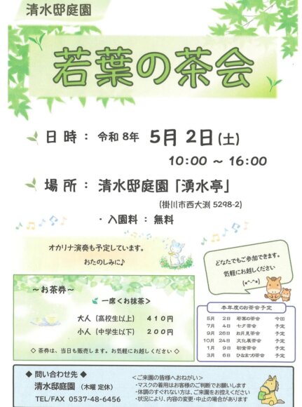 掛川市南部にある清水邸庭園の「湧水亭」にて、お茶会が開催されます🌱